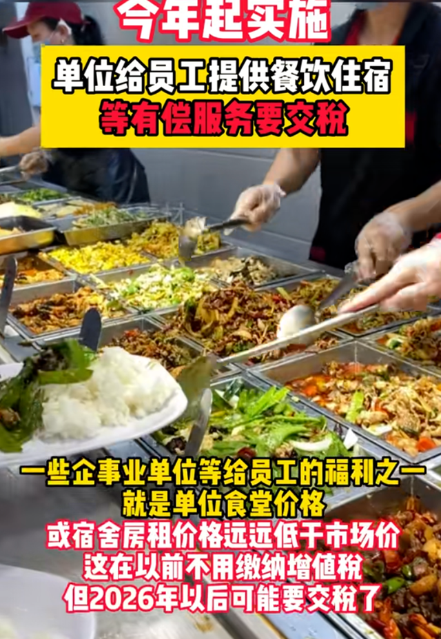 2026年1月1日起,增值税法正式落地,删除了“单位为员工提供服务免税”条款,明确单位向员工提供餐饮、住宿等有偿服务需缴增值税,一般纳税人6%,小规模3%,新政初衷是规范税收征管,却引爆全网争议。现在多家媒体已经开始报道了,这就意味着新规定板上钉钉了。一边是企业额外增负难承受,多数单位食堂早已承包给餐饮公司,承包方已按规定缴纳增值税、企业所得税等税费,新政相...